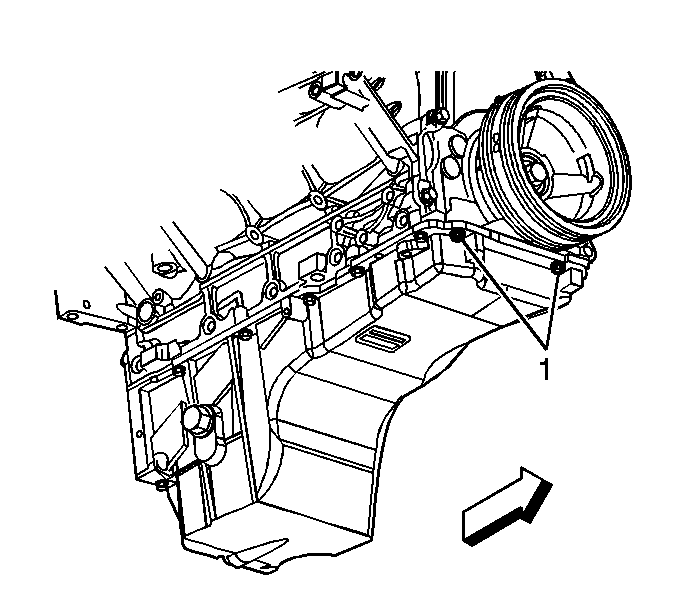 3. Remove the oil pan-to-front cover bolts (1).