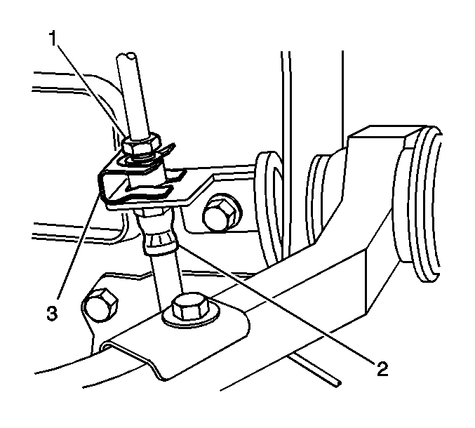 6. Remove the brake hose retaining clip (3) from the brake hose mounting bracket.