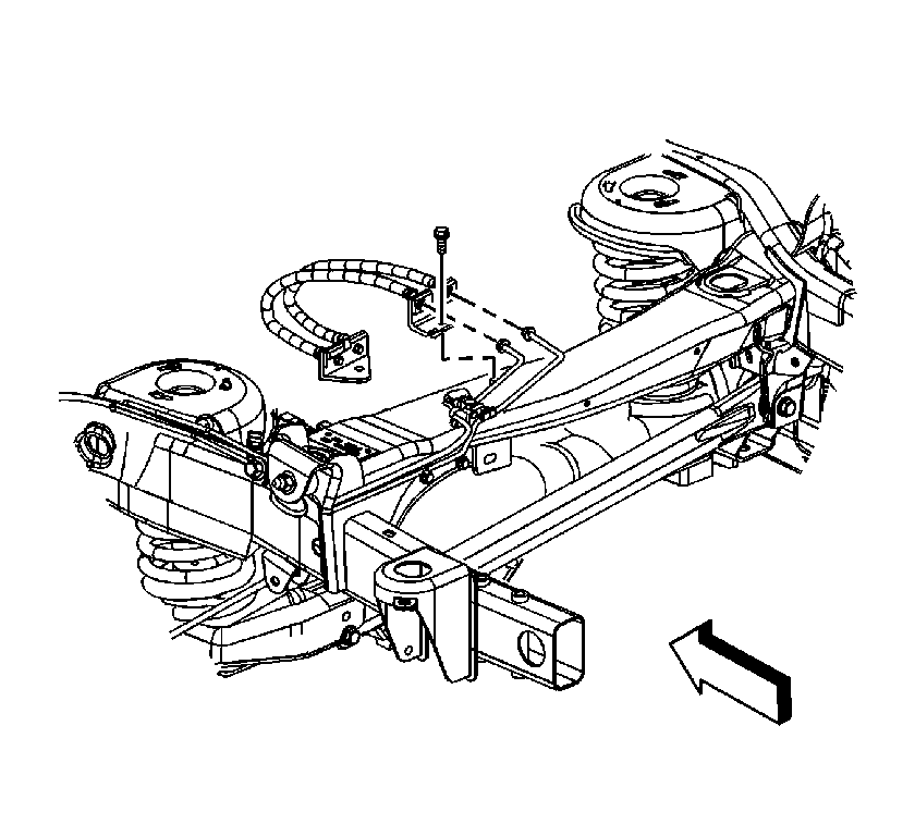 7. With the weight of the vehicle on the suspension, install the brake hose bracket bolt.