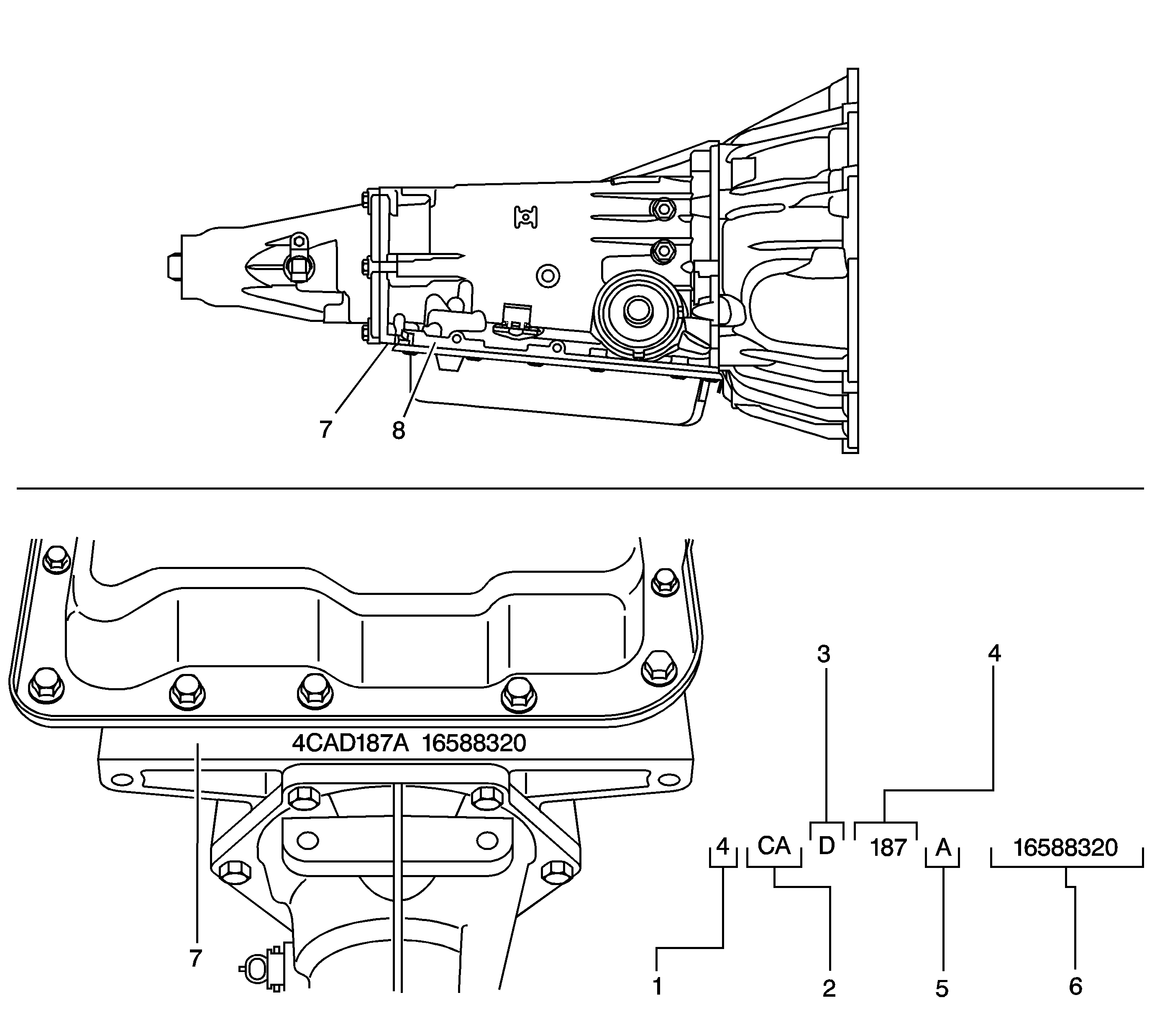 (8)Optional Transmission ID Tag Location, Tag Is Used as a Back-Up If Unable To Etch Case/Pan Area and To Bar Code Scan