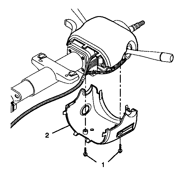 12. Install the upper trim cover (1) and secure by using 2 TORX® head screws (2).