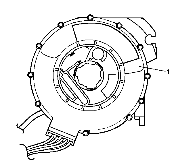 5. Align the SIR coil assembly (1) with the horn tower on the turn signal cancel cam assembly and install onto the steering shaft.