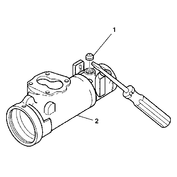 Remove the check valve (1) from the steering gear housing (2) using a small screwdriver.