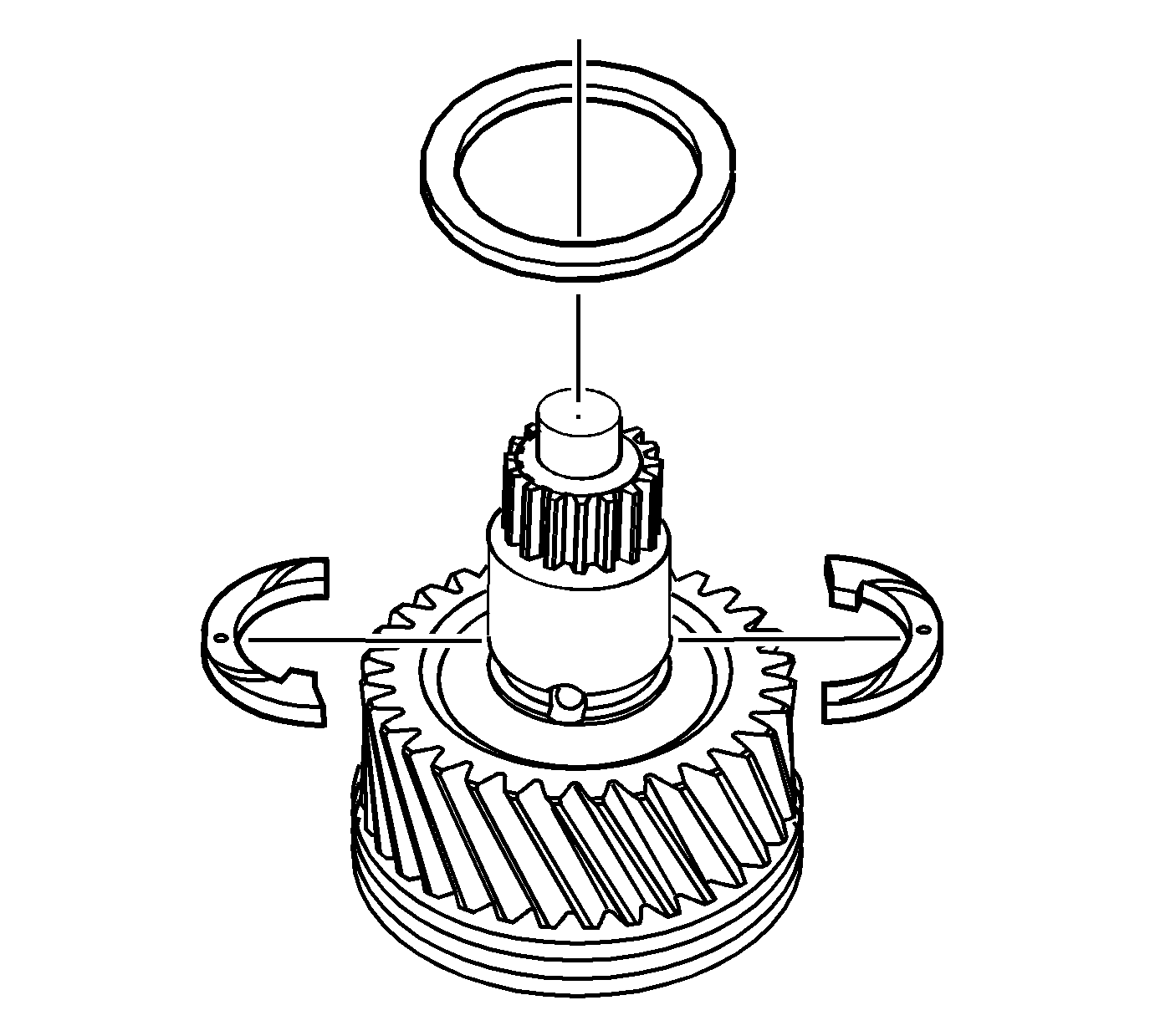33. Install the retainer ring. Ensure that the retainer ring is installed around the thrust washers.