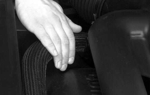 Caution: Heater and radiator hoses, and other engine parts, can be very hot. Do not touch them. If you do, you can be burned.